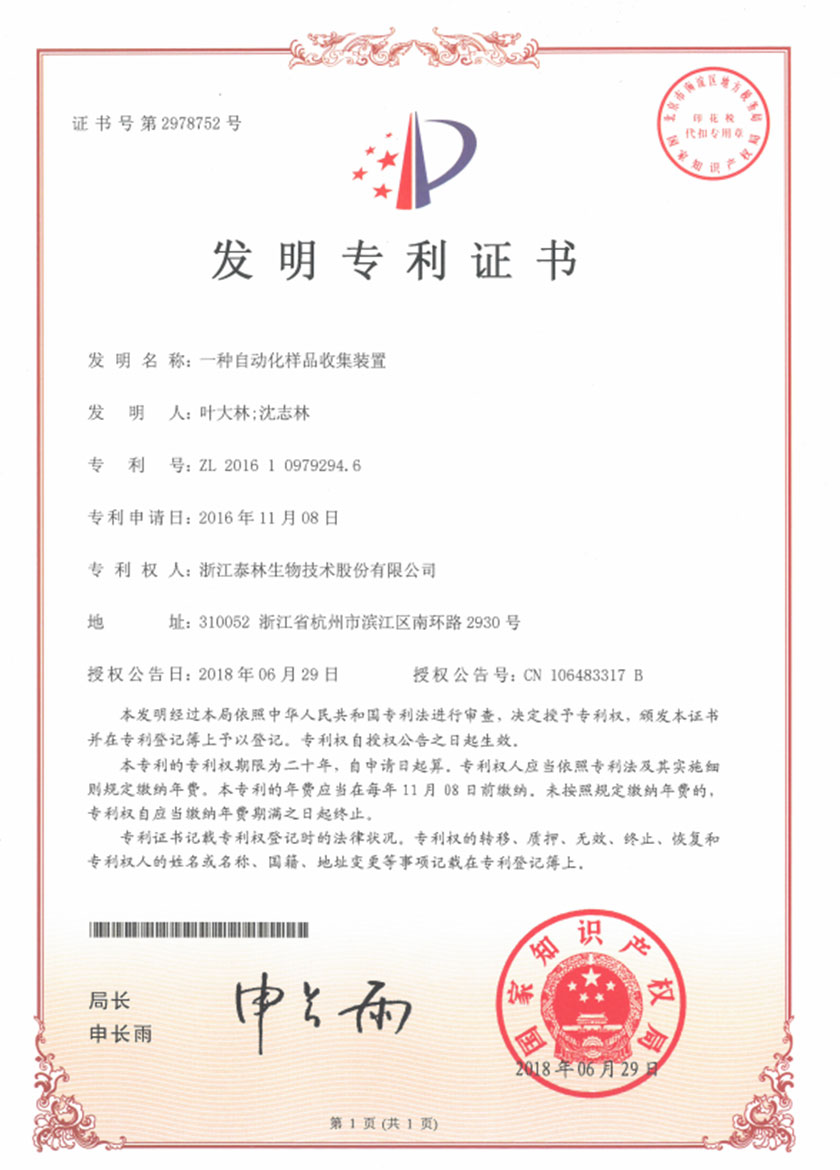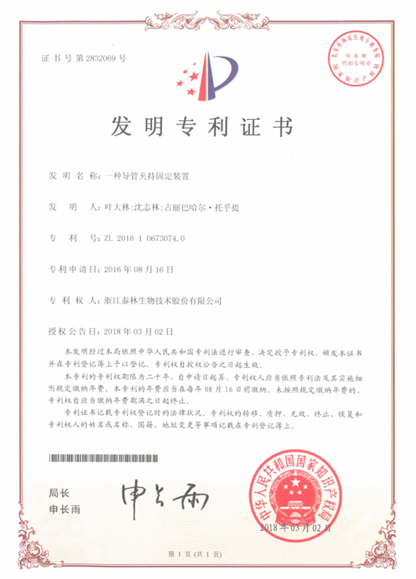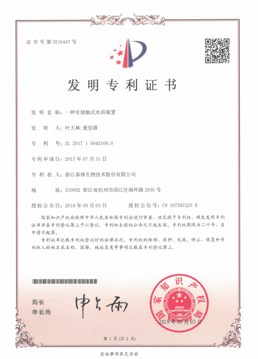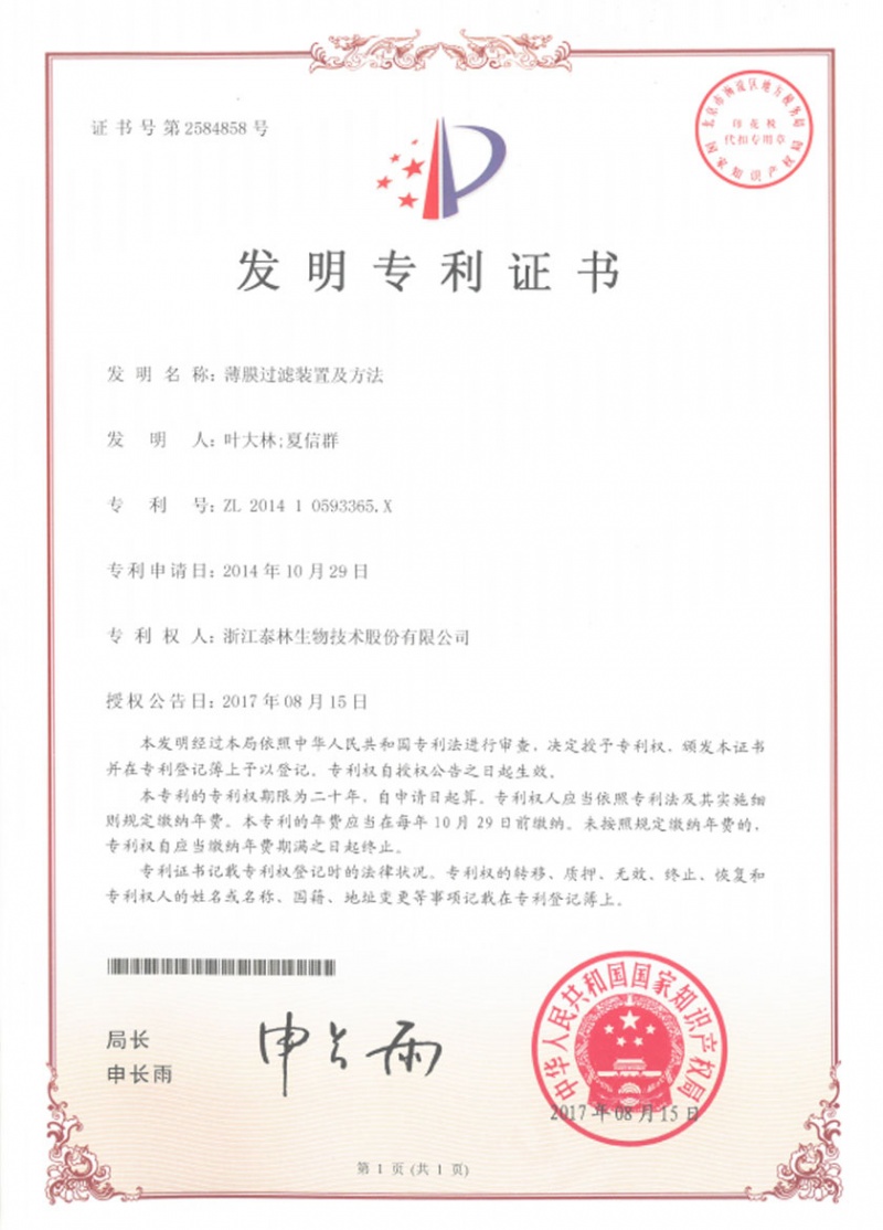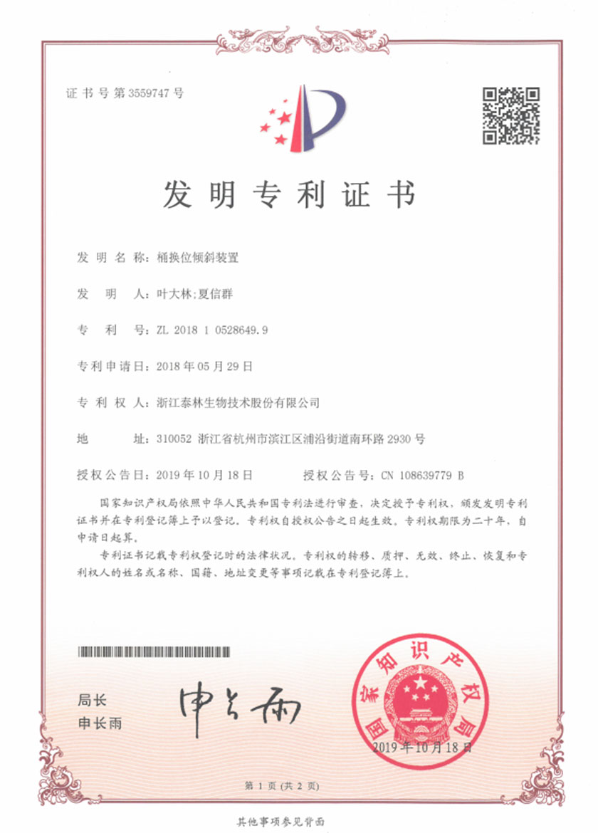 泰林生物擁有國家專利200多項,其中發(fā)明專利19項 。