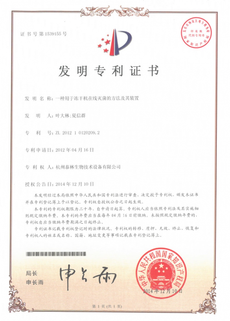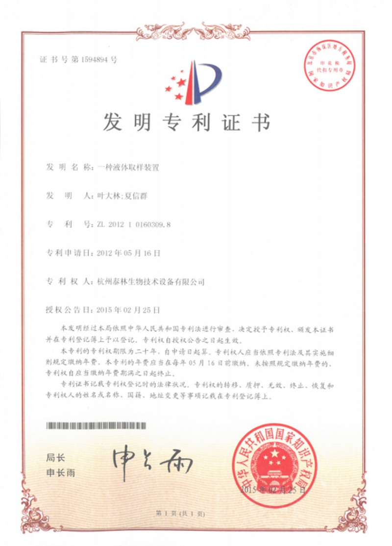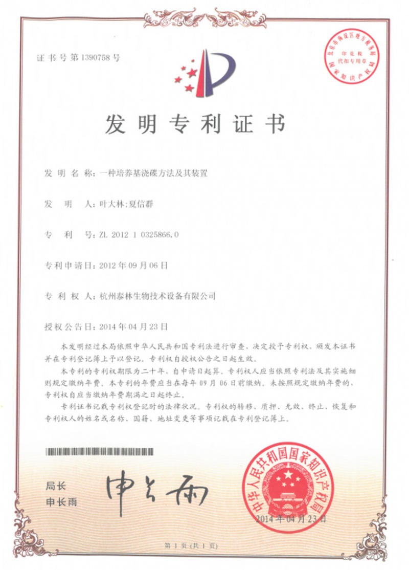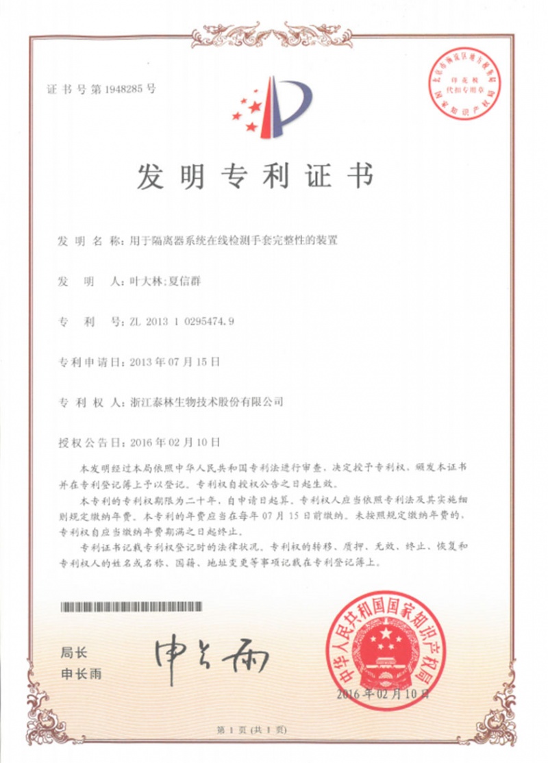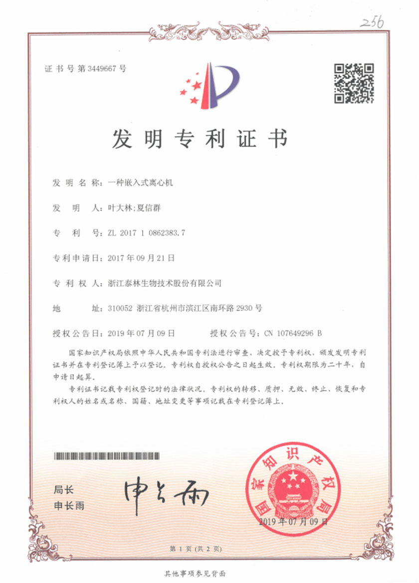 泰林生物擁有國家專利200多項,其中發(fā)明專利19項 。