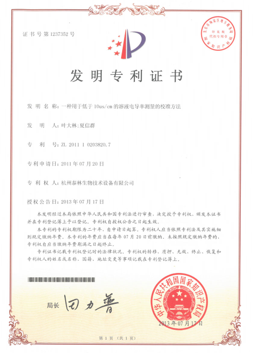 一種用于低于10us/cm的涫寢電導率測量的校準方法ZL 2011 1 0203820.7 -